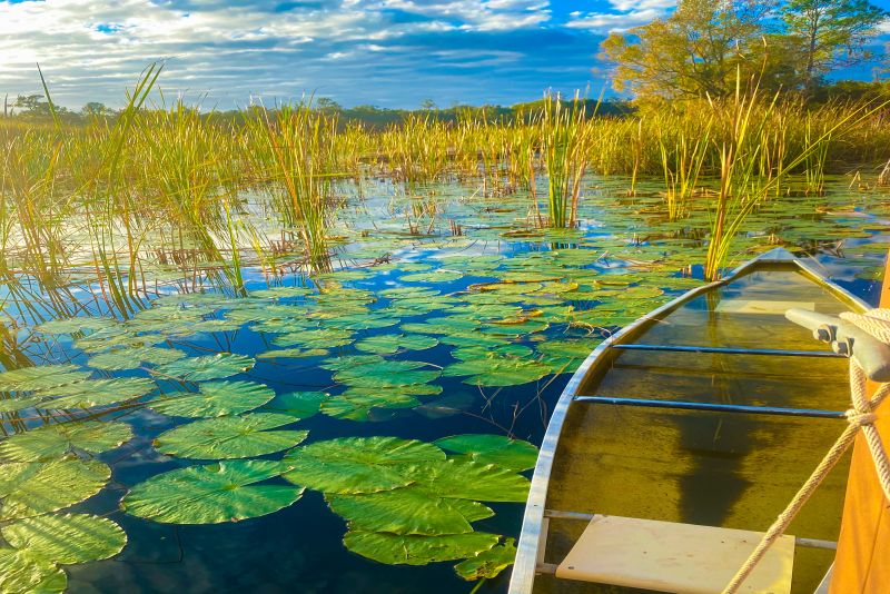 Osservazione della fauna e flora selvatica a bordo dell’Everglades Airboat Ride per avvistamento alligatori. In questo habitat sarà possibile vedere anche coccodrilli, lamantini, serpenti, tartarughe, aquile di mare e molti volatili